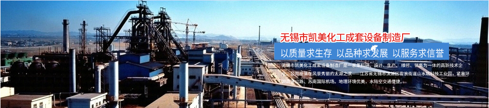 無錫市凱美化工成套設備制造廠是一家集科研、設計、生產(chǎn)、 維修、銷售為一體的企業(yè)。公司座落在風景秀麗的太湖之濱——江蘇省無錫市濱湖區(qū)雪浪街道山水城科技工業(yè)園,緊靠環(huán)湖高速公路、蘇南國際機場。地理環(huán)境優(yōu)美,水陸空交通便捷。公司憑借在化工、制藥設備領(lǐng)域的專業(yè)水平和成熟的技術(shù),在石化、制藥領(lǐng)域迅速崛起。